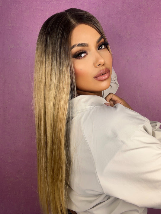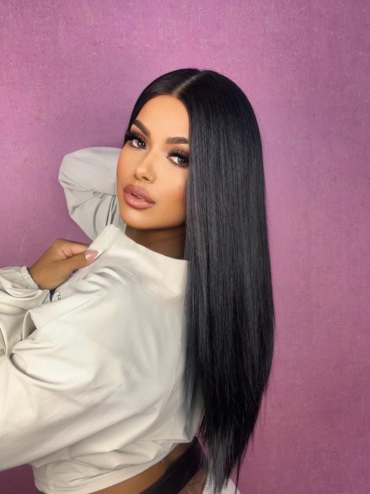 Peluca con frontal 13x4 partida libre – Semi Humana – 24 pulgadas – Sexy Flor